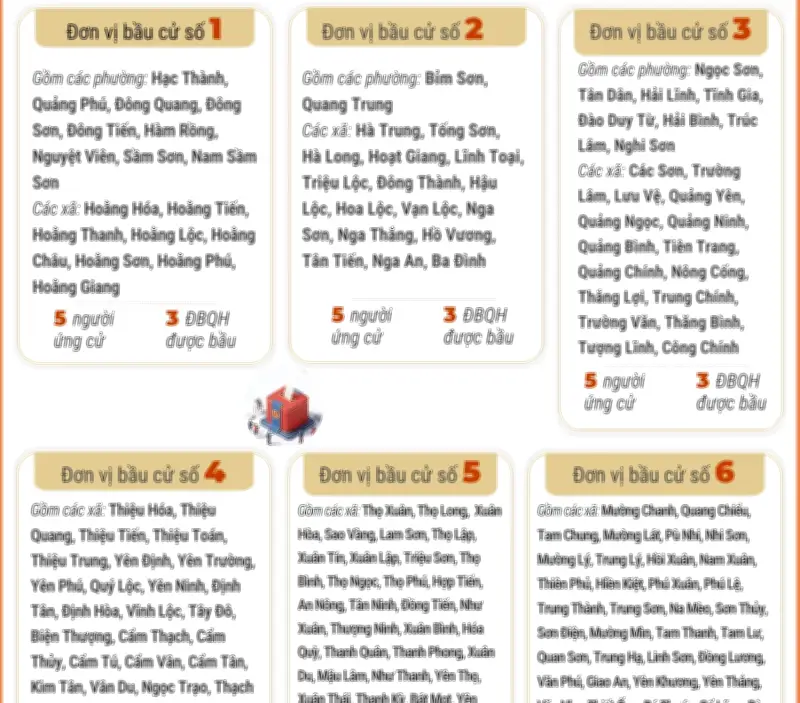 Các đơn vị bầu cử mới sẽ được phân bổ tại các khu vực có sự biến động về dân cư và nhu cầu quản lý nhà nước. Cụ thể, việc thành lập này nhằm đảm bảo mỗi đơn vị có số lượng cử tri phù hợp, tạo điều kiện thuận lợi cho người dân tham gia bỏ phiếu và nâng cao tính đại diện trong HĐND. Các đơn vị này sẽ bao gồm cả khu vực thành thị và nông thôn, phản ánh sự đa dạng về cơ cấu dân số và kinh tế của tỉnh Thanh Hóa.