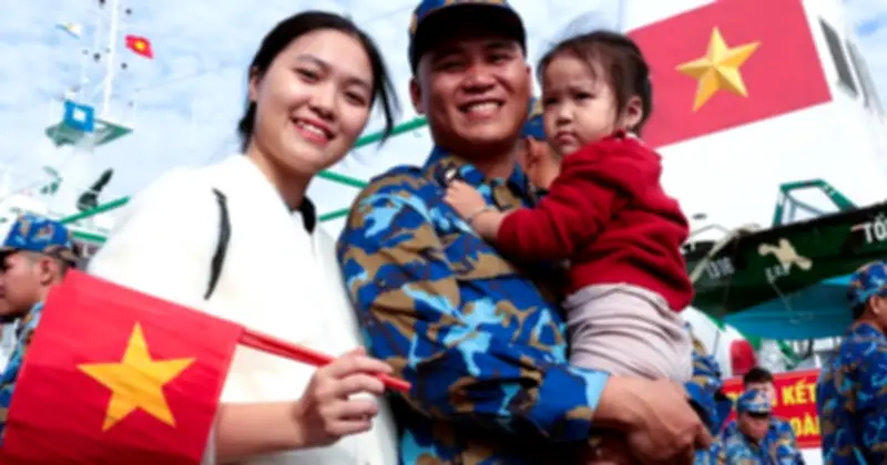 Lễ tiễn các tàu đi biển cuối năm chứng kiến nhiều cuộc chia tay cảm động, khi vợ con cán bộ, chiến sĩ được phép ra cầu cảng tiễn đưa - một thay đổi tích cực so với trước đây để giảm bớt áp lực tâm lý. Đại diện là thượng úy Dương Thế Phòng, 28 tuổi từ Hải Phòng, chia tay vợ Nguyễn Thị Hoàng Yến và con gái Dương Quỳnh Anh 2 tuổi trước khi lên đường nhận nhiệm vụ phân đội trưởng tại đảo Trường Sa.