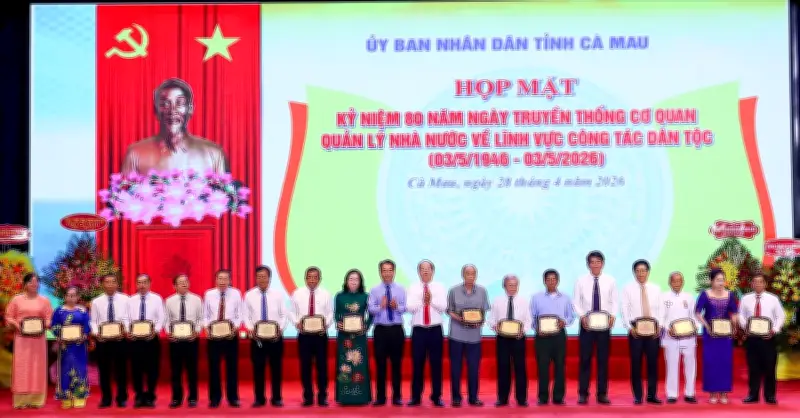 Ngày 28/4, tỉnh Cà Mau đã tổ chức họp mặt kỷ niệm 80 năm ngày truyền thống cơ quan quản lý nhà nước về công tác dân tộc (3/5/1946-3/5/2026). Tham dự buổi lễ có ông Nguyễn Hồ Hải, Uỷ viên Ban Chấp hành Trung ương Đảng, Bí thư Tỉnh uỷ; bà Trần Thị Hoa Ry, Phó Chủ tịch Hội đồng Dân tộc của Quốc hội; cùng lãnh đạo các sở, ban, ngành, nguyên lãnh đạo cơ quan công tác dân tộc qua các thời kỳ, đại diện UBND các xã, phường, các vị chức sắc tôn giáo và người có uy tín trong vùng đồng bào dân tộc thiểu số.