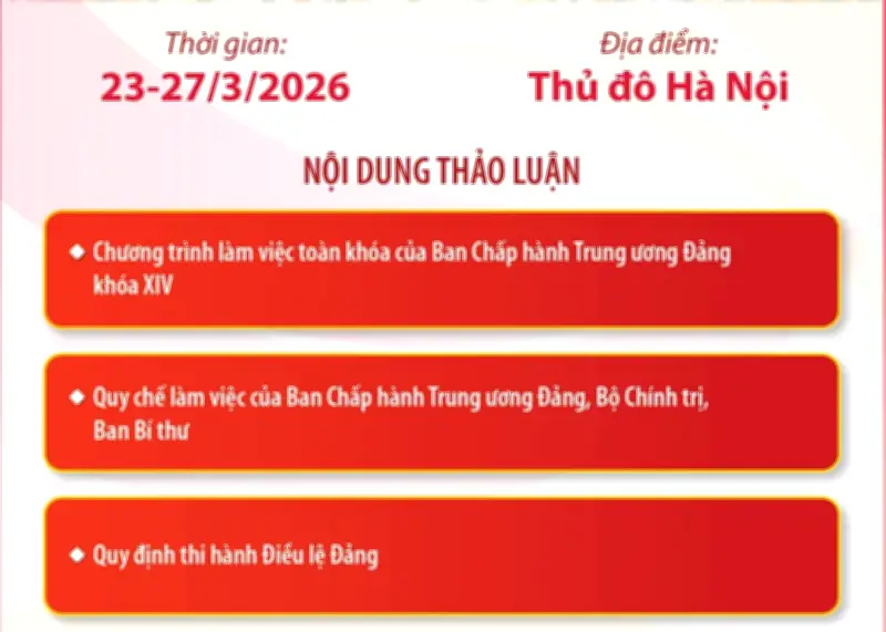 Theo chương trình đã được thông qua, Hội nghị sẽ làm việc liên tục từ ngày 23/3/2026 và dự kiến kết thúc vào ngày 27/3/2026. Trong thời gian này, các đại biểu sẽ thảo luận chi tiết, đóng góp ý kiến để đi đến những quyết sách phù hợp nhất, phục vụ lợi ích của nhân dân và sự phát triển chung của đất nước.