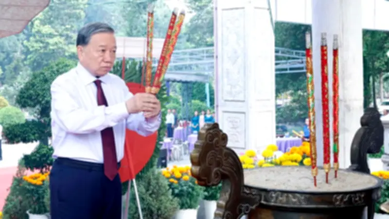 Trong không khí trang nghiêm và xúc động, Tổng Bí thư, Chủ tịch nước Tô Lâm đã thắp hương tri ân các Anh hùng - Liệt sĩ đã hy sinh vì độc lập, tự do của Tổ quốc. Đây là một hoạt động ý nghĩa, thể hiện đạo lý uống nước nhớ nguồn của dân tộc Việt Nam.