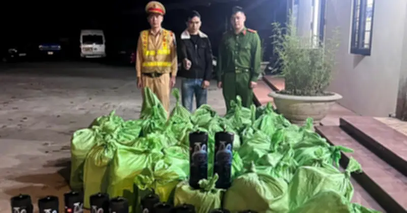 Ngay lập tức, tổ công tác đã yêu cầu phương tiện dừng lại để tiến hành kiểm tra theo đúng quy định. Qua kiểm tra, công an xác định xe ô tô trên do đối tượng P.V.T. (sinh năm 1988, trú tại xã Hải Sơn, tỉnh Quảng Ninh) điều khiển. Trên xe chở trái phép 50 bao tải dứa màu xanh, bên trong chứa 200 bình khí, nghi là khí N2O.