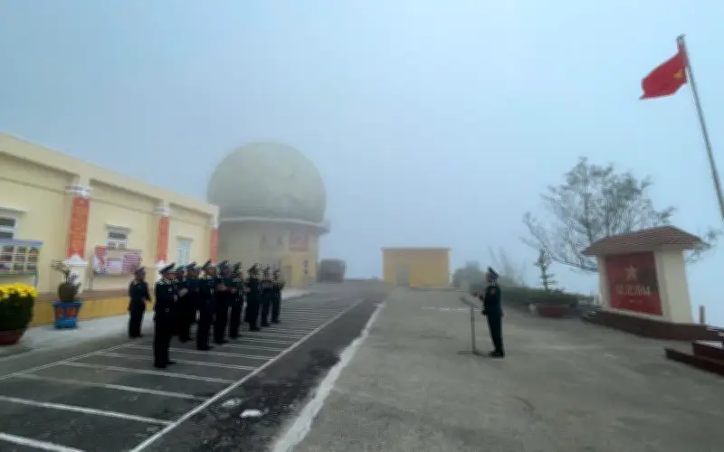 Bộ đội Trạm ra đa 29 chào cờ trong sương mù, canh giữ bầu trời Tết