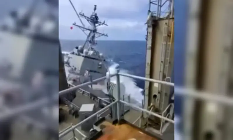 Khoảnh khắc căng thẳng: Chiến hạm Mỹ đâm trúng tàu hậu cần trên Biển Caribe