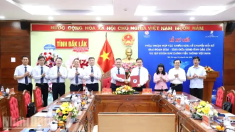 Ngày hôm nay, tại tỉnh Đắk Lắk, Ủy ban nhân dân tỉnh và Tập đoàn Bưu chính Viễn thông Việt Nam (VNPT) đã chính thức tổ chức lễ ký kết thỏa thuận hợp tác về chuyển đổi số cho giai đoạn 2026-2030, với tầm nhìn hướng đến năm 2035. Sự kiện quan trọng này có sự tham dự của đồng chí Đỗ Hữu Huy, Ủy viên Dự khuyết Trung ương Đảng, Chủ tịch Ủy ban nhân dân tỉnh Đắk Lắk, cùng đại diện lãnh đạo các sở, ban, ngành của tỉnh. Về phía VNPT, ông Tô Dũng Thái, Chủ tịch Hội đồng thành viên, và các lãnh đạo đơn vị trực thuộc cũng hiện diện đông đủ.