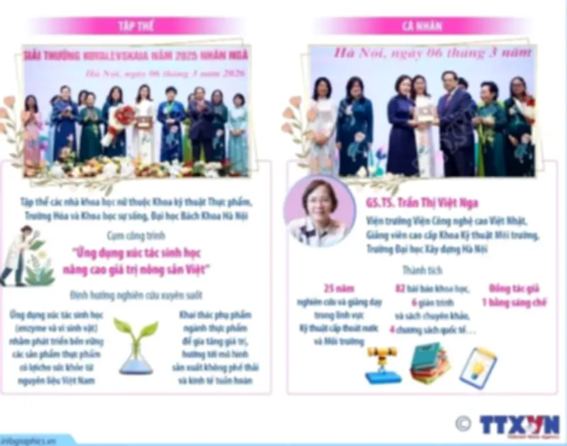 Giải thưởng Kovalevskaia, được thành lập từ năm 1985, nhằm tôn vinh các nhà khoa học nữ xuất sắc, nhưng qua thời gian đã mở rộng để ghi nhận cả tập thể và cá nhân có đóng góp đáng kể. Năm 2025, giải thưởng tiếp tục khẳng định vai trò then chốt của khoa học trong sự phát triển kinh tế - xã hội của Việt Nam.