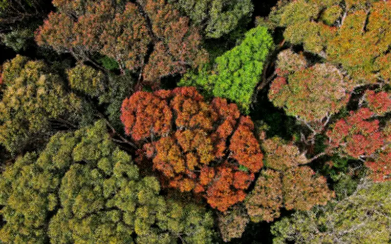 Tại khu vực đầu xã Măng Đen, hàng nghìn tán cây tròn đầy xếp cạnh nhau, nhìn từ trên cao giống như những "bông súp lơ" khổng lồ với nhiều màu sắc trải dài theo triền dốc. Sự thay lá diễn ra gần như đồng loạt, tạo nên hiệu ứng thị giác mạnh mẽ, khiến nhiều người lần đầu chứng kiến không giấu được sự ngỡ ngàng trước vẻ đẹp nguyên sơ của cao nguyên.