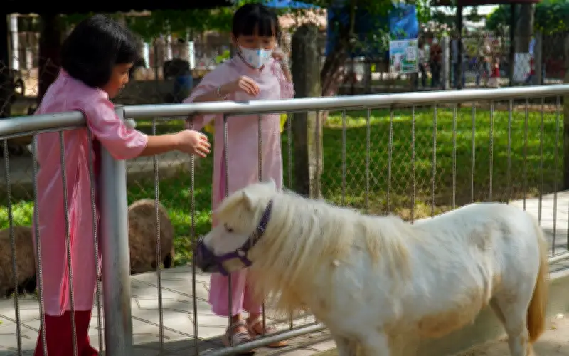 Ngày Mùng 3 Tết Bính Ngọ 2026, Trại rắn Đồng Tâm ở xã Kim Sơn, tỉnh Đồng Tháp chứng kiến dòng người đổ về đông đúc, tạo nên cảnh tượng nhộn nhịp từ cổng vào đến các khu tiểu cảnh. Đặc biệt, hai chú ngựa lùn Pony với vẻ ngoài dễ thương đã trở thành "tâm điểm" khiến nhiều du khách, đặc biệt là trẻ nhỏ, thích thú xếp hàng chờ đợi để được chụp ảnh và tương tác.