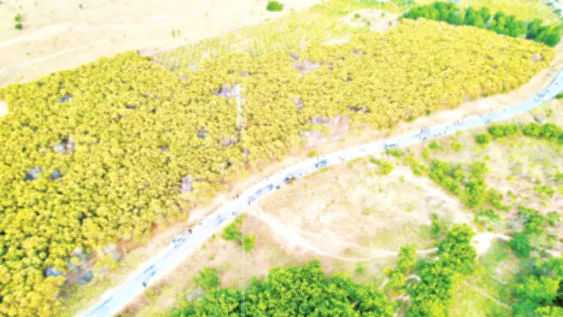 Cây keo lá tràm khu vực ven biển tỉnh Lâm Đồng không chỉ đẹp trong mắt người dân và du khách mà còn đóng vai trò như một 'chiến binh' bảo vệ môi trường. Chúng giúp chắn gió bão, chống tình trạng cát bay ven biển, bảo vệ đường bờ biển và giảm nguy cơ 'sa mạc hóa'. Do đó, cứ mỗi năm vào tháng 12 và tháng 1 năm sau, cây tự động nở hoa mà không cần sự chăm sóc đặc biệt từ con người.