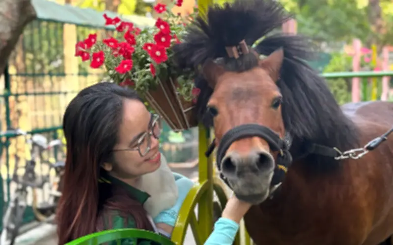 Không chỉ dừng lại ở màn diễu hành, đây còn là cơ hội để du khách, đặc biệt là các em nhỏ, có những trải nghiệm dịu dàng và giáo dục. Các em được lắng nghe những câu chuyện về tập tính của động vật, quan sát chúng từ gần, và học cách yêu thương, tôn trọng sự sống một cách trực quan và sinh động.