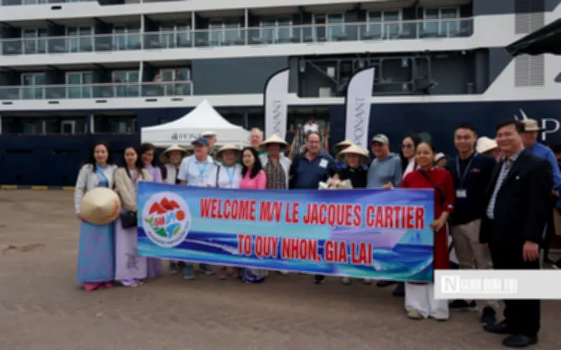 Sáng ngày 15 tháng 2, trong không khí rộn ràng của những ngày đầu năm mới, tàu du lịch cao cấp Le Jacques Cartier thuộc hãng tàu Compagnie du Ponant của Pháp đã chính thức cập cảng Quy Nhơn. Sự kiện này đánh dấu chuyến tàu du lịch quốc tế đầu tiên đến với thành phố biển xinh đẹp này trong năm 2026, mang theo 120 du khách quốc tế cùng toàn bộ thủy thủ đoàn đến tham quan và trải nghiệm tại tỉnh Gia Lai.