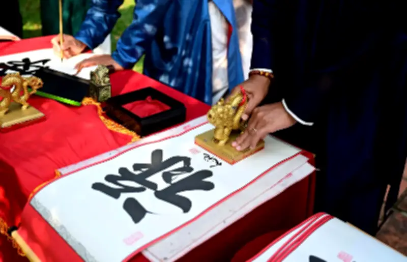 Không khí khai ấn diễn ra rộn ràng và tưng bừng. Ban tổ chức đã chuẩn bị sẵn giấy và mực để các nhà thư pháp viết tặng du khách những chữ tốt lành như Phúc, Lộc, Thọ, Khang, Tâm. Ấn triện “Phú, Thọ, Khang, Ninh” được đóng lên từng bức thư pháp trước khi trao tặng cho du khách, như một lời chúc đầu năm đầy trang trọng và ý nghĩa.