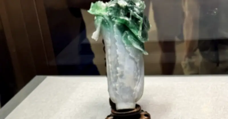 Một trong những báu vật biểu tượng của bảo tàng là bắp cải ngọc bích (Jadeite Cabbage). Khối ngọc xanh - trắng được chạm khắc thành bẹ cải thảo với từng nếp lá tinh xảo, cùng hai con côn trùng bé xíu trông rất sống động. Một kiệt tác khác là miếng thịt kho Đông Pha bằng đá, với tạo hình hoàn hảo mô phỏng các lớp bì, mỡ, và nạc, đến mức khi nhìn vào giữa trưa, người ta có thể tưởng tượng ra một bát cơm nóng kế bên.
