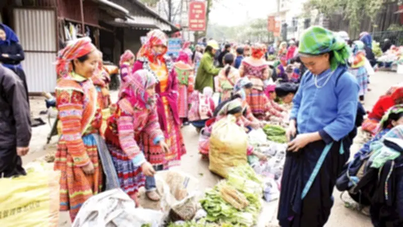Tại một góc khác, các chị, các bà đang chăm chú lựa chọn váy, chỉ thêu và những chiếc khăn mới nhiều màu sắc. Các chị trẻ thích những chiếc áo thêu hoa tinh xảo, chiếc chân váy xòe rộng như tán ô. Các bà, các mẹ thì tần ngần bên những chiếc lắc, vòng bạc lấp lánh. Lũ trẻ con thì mê mẩn liếm môi nếm thử chiếc bánh rán mật ngọt ngào, khuôn mặt bầu bĩnh ánh lên niềm hạnh phúc giản dị.