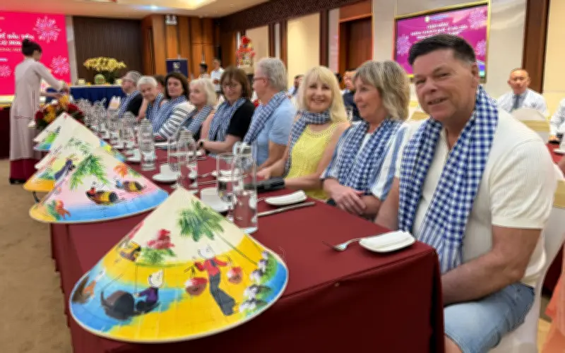 Trong không khí rộn ràng của những ngày đầu xuân Bính Ngọ, chiều ngày 21-2 (tức mùng 5 Tết), Saigontourist Group đã tổ chức Chương trình Họp mặt - Chào mừng những vị khách quốc tế đầu tiên đến với Thành phố Hồ Chí Minh trong năm mới 2026. Sự kiện thu hút 50 du khách đang lưu trú tại các đơn vị thành viên của tập đoàn, mang đến những trải nghiệm văn hóa độc đáo và đáng nhớ.