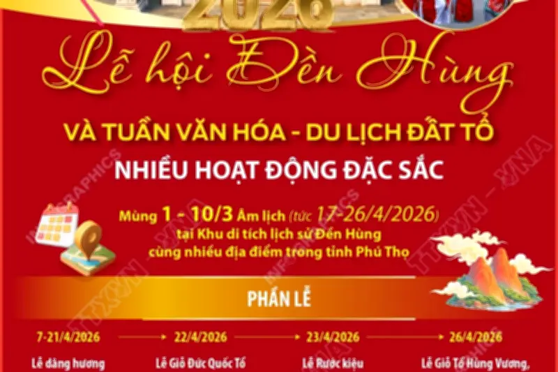 Lễ hội Đền Hùng và Tuần Văn hóa Du lịch Đất Tổ năm 2026 đang được chuẩn bị với quy mô lớn, hứa hẹn mang đến nhiều hoạt động đặc sắc, thu hút đông đảo du khách và người dân tham gia. Sự kiện này không chỉ là dịp tưởng nhớ công ơn các Vua Hùng mà còn là cơ hội quảng bá văn hóa, du lịch của tỉnh Phú Thọ.