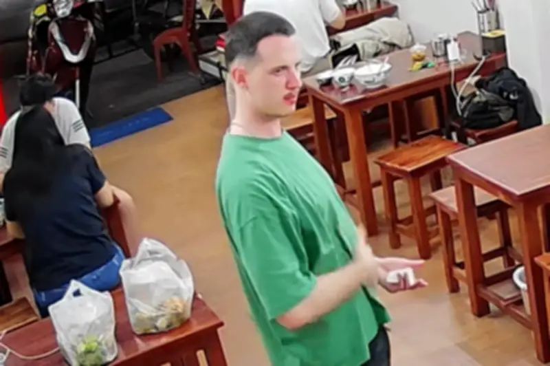 Theo lời chủ quán, vị khách Tây này thường cố gắng sử dụng vốn tiếng Việt ít ỏi để gọi món, với những câu đơn giản như "em ơi" hay "cái này". Trong lần ghé thăm gần đây, anh đã gọi một bát bún nạm chả, sau đó vì quá ngon nên đã gọi thêm hai lần nạm nữa để ăn kèm. Chính vì vậy, cuối bữa ăn, anh đã no nê và có hành động xoa bụng đầy tự nhiên.