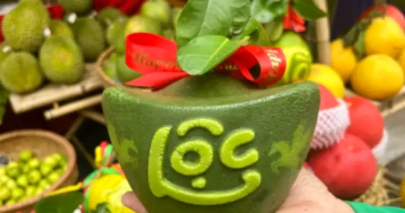 Vừa khéo léo sắp xếp lại khay bưởi, chị Trần Thị Mỹ Duyên (30 tuổi), nhân viên tại một quầy trái cây độc lạ ở phường Bình Đông, TP.HCM, vừa nhiệt tình mời khách và giới thiệu về loại bưởi mini đang gây sốt. Trên bàn trưng bày, những trái bưởi nhỏ xíu được tạo hình vuông vức tựa như những thỏi vàng lấp lánh, mặt ngoài khắc chữ "tài" hoặc "lộc" một cách gọn gàng, tinh tế. Chỉ cần nhìn từ xa, sản phẩm đã toát lên sự khác biệt rõ rệt so với các loại bưởi tạo hình cỡ lớn thường thấy trong những mùa Tết trước.
