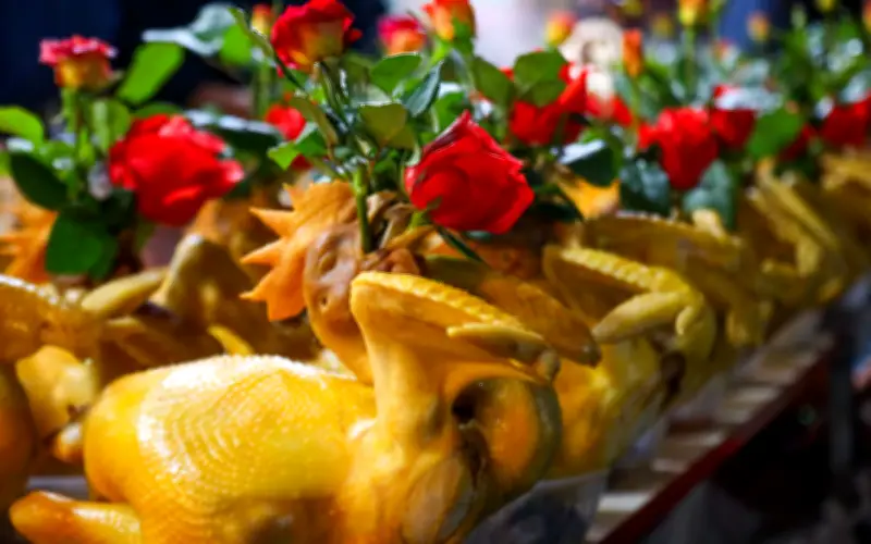 Gà lễ ngậm hoa hồng đắt khách, giá lên tới 800.000 đồng mỗi con