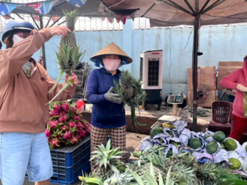 Theo các tiểu thương, ngày 28 tháng Chạp là thời điểm chợ sôi động nhất. Do nhu cầu mua sắm tăng cao, giá cả trái cây cũng tăng chóng mặt. Chẳng hạn, mãng cầu và xoài đều có giá từ 50.000 đồng/kg, tăng gấp đôi hoặc gấp ba so với ngày thường. Trong khi đó, những quả khóm nhỏ, hàng dạt với cuống lá héo được xả hàng với giá 20.000 đồng/trái nhưng vẫn vắng khách. Ngược lại, khóm to, tươi tắn có thể lên tới 40.000 - 50.000 đồng/quả.