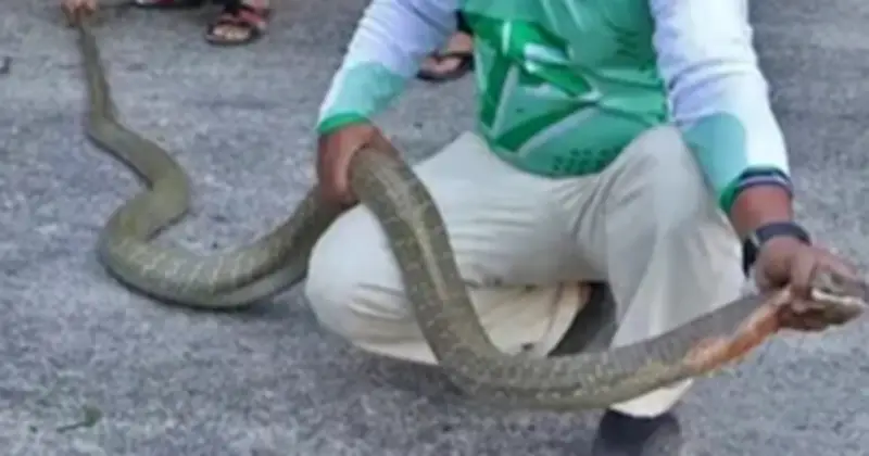 Hoảng loạn ở làng Betong khi phát hiện 3 rắn hổ mang chúa khổng lồ