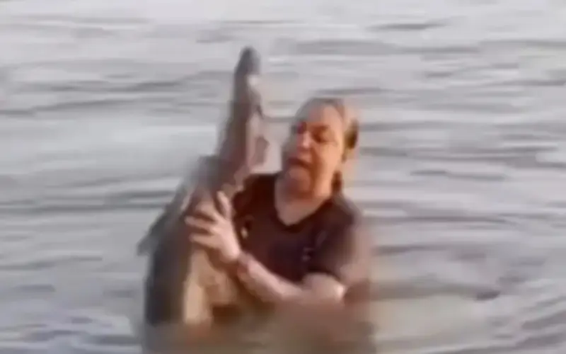 Kinh Hoàng: Phụ Nữ Tắm Sông Vô Tình Bắt Trúng Cá Sấu Con