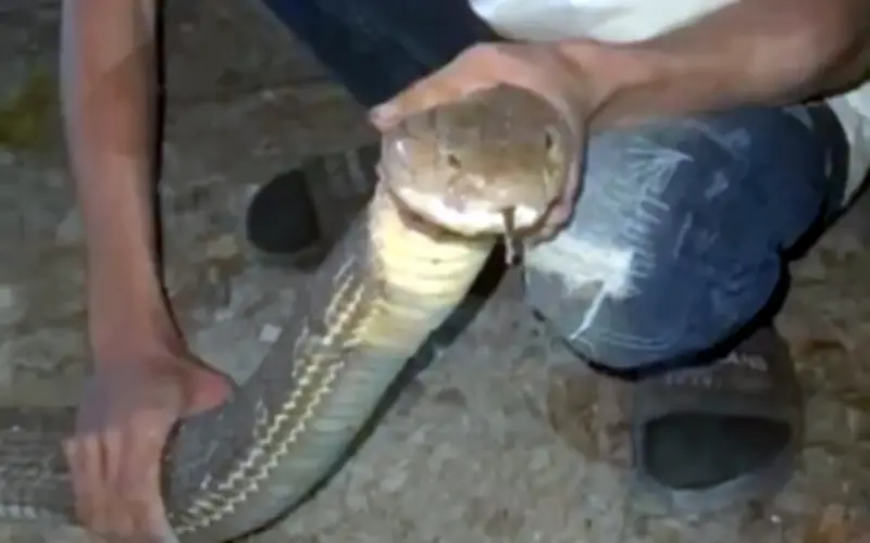 Khi đội cứu hộ có mặt, ông Teerapong, 45 tuổi, chủ nhà, đã chỉ dẫn vị trí chính xác nơi con rắn hổ mang chúa, còn được gọi là "bonghla" ở miền nam Thái Lan, đang ẩn nấp. Con rắn độc này được phát hiện đang cuộn tròn dưới một khúc gỗ gần chuồng gà, thỉnh thoảng thò đầu ra ngoài một cách đe dọa. Các nhân viên cứu hộ đã phải hành động hết sức thận trọng vì đây là một loài rắn cực kỳ nguy hiểm với nọc độc mạnh.