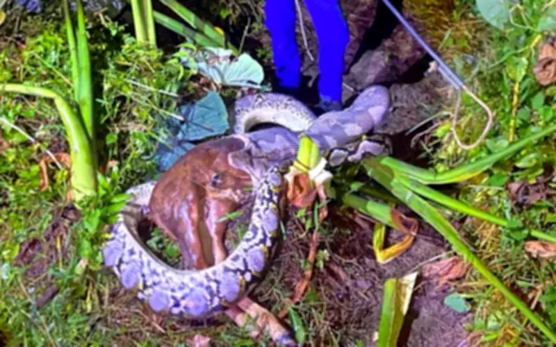Nhận được tin báo, lực lượng Phòng vệ Dân sự Malaysia (APM) đã có mặt tại hiện trường vào lúc 20 giờ 20 phút. Đội cứu hộ xác nhận rằng con trăn này có chiều dài lên tới 5,5 mét và nặng 45 kg, một kích thước đáng báo động. Điều đáng lo ngại hơn là vụ việc xảy ra chỉ cách khu dân cư khoảng 500 mét, cho thấy sự xâm nhập nguy hiểm của loài bò sát này vào khu vực sinh sống của con người.