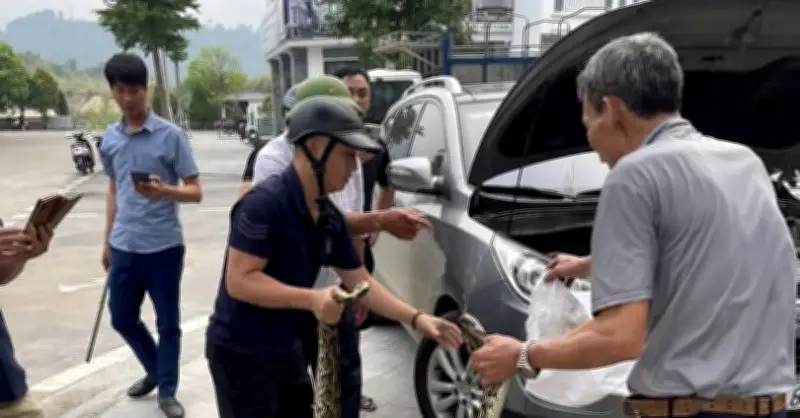 Lào Cai: Tài xế Hyundai Tucson kinh hãi phát hiện trăn khổng lồ trong khoang máy
