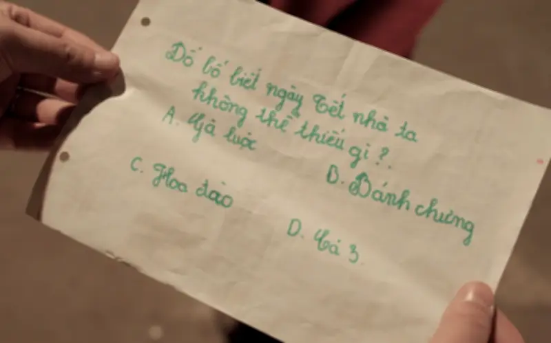 Năm 2006, khi còn nhỏ, Nguyệt đã đố bố một câu hỏi trước khi ông lên đường đi làm xa nhà: 'Đố bố biết ngày Tết nhà ta không thể thiếu gì?'. Người bố ngỡ ngàng khi câu trả lời không phải là những thứ truyền thống như bánh chưng, gà luộc hay hoa đào, mà chính là 'bố'. Hai mươi năm sau, Nguyệt đã lập gia đình và đang mang bầu, không thể về nhà ăn Tết cùng bố mẹ.
