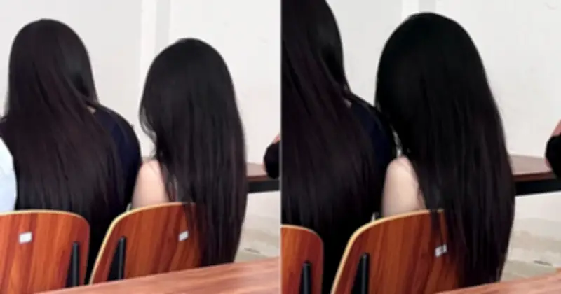 Thoạt nhìn, những bức ảnh này không có gì quá đặc biệt. Chúng chỉ đơn thuần ghi lại khung cảnh từ phía sau của hai cô gái đang ngồi trong lớp học. Không rõ mặt, không trang phục lộng lẫy, nhưng chính "khí chất" toát ra từ họ đã khiến nhiều người xem không khỏi ấn tượng. Điểm nhấn mạnh mẽ nhất chính là mái tóc đen dài, suôn mượt và thẳng tự nhiên của cả hai. Khoảnh khắc một trong hai nữ sinh nhẹ nhàng vuốt tóc, để lộ bờ vai trần thanh mảnh, càng khiến tổng thể trở nên cuốn hút hơn bao giờ hết.
