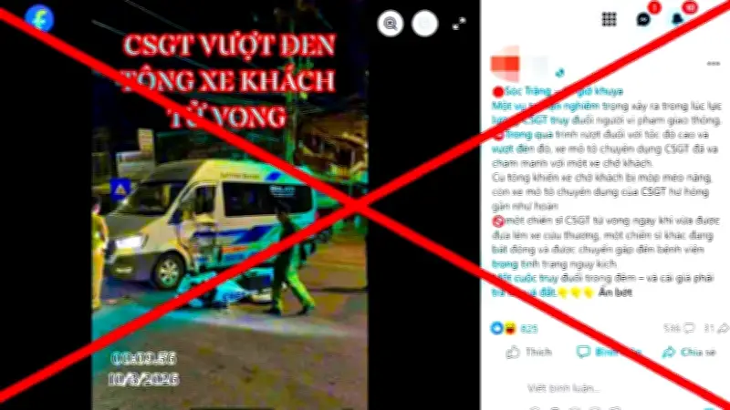 Trong những ngày gần đây, cộng đồng mạng xã hội tại Việt Nam đã xôn xao trước thông tin về một vụ tai nạn giao thông nghiêm trọng được cho là xảy ra ở Sóc Trăng. Bài đăng từ các trang thông tin không chính thống mô tả chi tiết sự việc: "Sóc Trăng - 12 giờ khuya. Một vụ tai nạn nghiêm trọng xảy ra trong lúc lực lượng cảnh sát giao thông truy đuổi người vi phạm giao thông, gây tai nạn làm một chiến sĩ tử vong, một chiến sĩ khác đang trong tình trạng nguy kịch...". Nội dung này nhanh chóng được nhiều tài khoản chia sẻ và bình luận, gây ra sự hoang mang đáng kể trong dư luận và ảnh hưởng tiêu cực đến uy tín của các lực lượng chức năng.