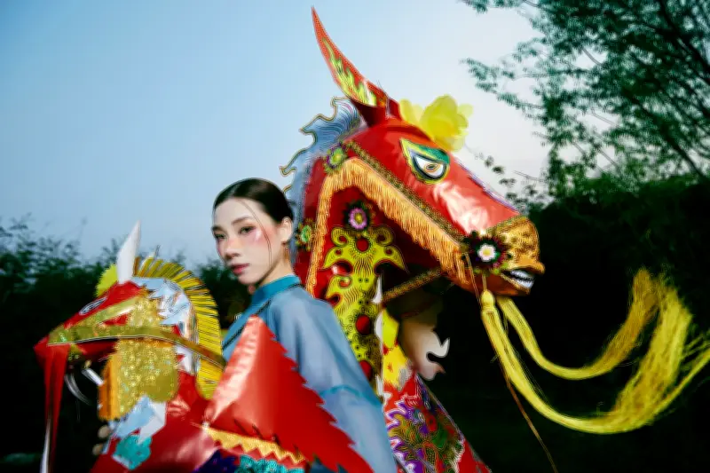 Trong văn hóa tín ngưỡng của người Việt, ngựa giấy từ lâu đã là một vật phẩm quen thuộc trong các nghi lễ cúng tế, từ thờ cúng gia tiên, giỗ chạp cho đến các đàn lễ Tam phủ, Tứ phủ. Tuy nhiên, việc đưa chất liệu này vào lĩnh vực nghệ thuật thị giác luôn là một thách thức lớn, bởi nó dễ gợi lên cảm giác u ám và rùng rợn. Chia sẻ về ý tưởng độc đáo này, Đức Thành cho biết cảm hứng đến từ những bộ ảnh thời trang chào đón năm Bính Ngọ đang thịnh hành.