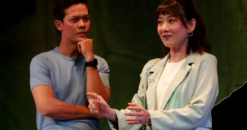 NSND Mỹ Uyên và diễn viên Sỹ Toàn đã tạo nên những màn đối thoại đầy căng thẳng trong vở Xóm phông bạt, qua đó làm nổi bật sự đối lập giữa vẻ bề ngoài hào nhoáng và thực tế phũ phàng bên trong.
