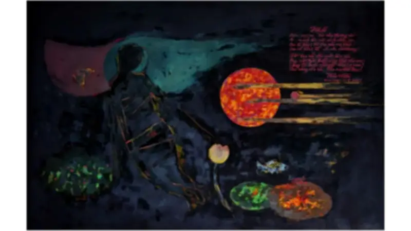 Họa sĩ Nguyễn Trà Vinh, sinh ra tại Cẩm Phả, Quảng Ninh, đã khởi đầu sự nghiệp với chất liệu lụa trước khi chuyên sâu vào sơn mài từ đầu những năm 2000. Đối với anh, sơn mài không chỉ là một kỹ thuật truyền thống mà còn là một phương thức tư duy sâu sắc. Mỗi lớp màu được phủ xuống, chờ đợi, và dần hiển lộ qua quá trình mài, tạo nên một ẩn dụ mạnh mẽ về đời sống nội tâm con người.