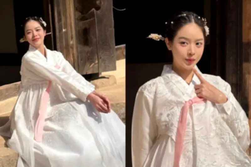 Hình ảnh thanh tao trong bộ hanbok trắng tinh khôi