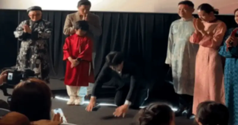 Tại buổi giao lưu diễn ra vào ngày 18/2 ở đầu cầu Hà Nội, sự xuất hiện của ông Kim Jin Geun, Tổng Giám đốc Lotte Entertainment Việt Nam, đã thu hút sự chú ý đặc biệt. Trong phần chia sẻ, ông bất ngờ quỳ gối và cúi gập người trước toàn bộ khán phòng, hành động đầy cảm xúc khiến nhiều người sững sờ. Tiếng pháo tay và reo hò vang lên không dứt, biến khoảnh khắc này thành điểm nhấn của sự kiện, thể hiện rõ quyết tâm và sự trân trọng mà ông dành cho dự án Mùi Phở. Ông Kim chân thành kêu gọi: "Xin khán giả cho Mùi Phở một cơ hội".