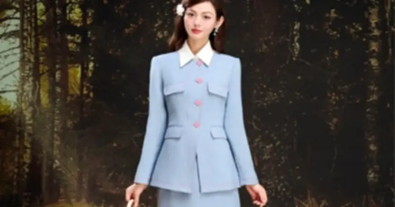 Một trong những cách phối đồ ấn tượng là kết hợp chân váy ngắn với áo khoác sang trọng. Chiếc áo khoác với dáng suông ôm nhẹ cơ thể cùng phần cổ sen được viền tinh tế tạo nên điểm nhấn đặc biệt. Các chi tiết như hàng cúc bấm đồng màu và túi ốp nắp gọn gàng mang đến tổng thể hiện đại, thanh lịch. Để hoàn thiện bộ trang phục, chân váy ngắn làm từ chất liệu phao có họa tiết ô quả trám không chỉ giúp giữ ấm mà còn tăng thêm nét duyên dáng.