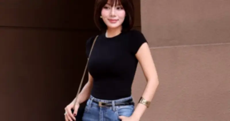Chiếc áo thun đen cổ tròn khi phối cùng quần denim cạp cao, dáng quần suông dài với tông xanh cổ điển, giúp khoe trọn đôi chân dài thanh mảnh. Kết hợp với giày cao gót mũi nhọn và túi xách cầm tay, các cô gái dễ dàng sở hữu diện mạo chỉn chu, phù hợp cho môi trường công sở hay những buổi cà phê cuối tuần.