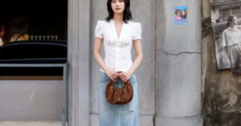 Khi kết hợp cùng áo trắng tay bồng và chân váy denim sáng màu, chiếc túi trở thành điểm nhấn màu sắc, làm dịu đi tổng thể tông sáng và tăng cường chiều sâu thị giác. Sự đối lập giữa chất liệu denim cứng cáp và túi mềm mại tạo nên nét hài hòa thú vị, đồng thời giữ được sự cân bằng giữa vẻ thanh lịch và trẻ trung.