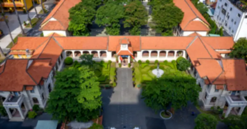 Ngôi trường được thiết kế bởi kiến trúc sư người Pháp Ernest Hébrard, mang đậm phong cách kiến trúc Pháp cổ điển. Toàn bộ khuôn viên trường rộng khoảng 8 hecta, với nhiều mảng xanh tạo nên không gian học tập thoáng đãng và thơ mộng.