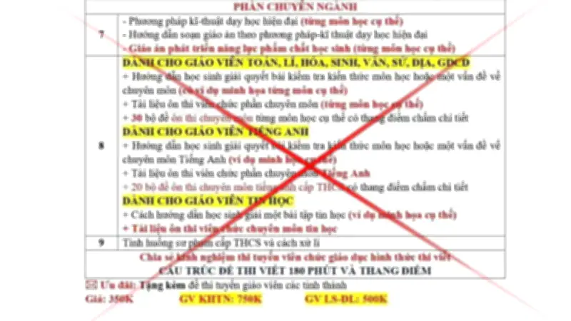 Theo đánh giá từ Bộ Nội vụ, việc rao bán tài liệu ôn thi tuyển viên chức giáo dục không chỉ là hành vi trục lợi bất chính mà còn vi phạm nghiêm trọng các quy định pháp luật hiện hành. Các tài liệu này thường được quảng cáo với nội dung "độc quyền", "bám sát đề thi" hoặc "có đáp án chính xác", tạo ra sự cạnh tranh không lành mạnh và ảnh hưởng tiêu cực đến tính công bằng trong tuyển dụng.