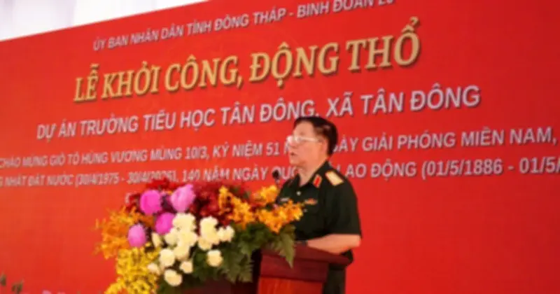 Ngày 17 tháng 4, Ủy ban Nhân dân tỉnh Đồng Tháp đã long trọng tổ chức lễ khởi công và động thổ xây dựng Trường tiểu học Tân Đông tại xã Tân Đông, thuộc địa bàn tỉnh Đồng Tháp. Sự kiện quan trọng này có sự hiện diện của Đại tướng Nguyễn Trọng Nghĩa, Ủy viên Bộ Chính trị, Chủ nhiệm Tổng cục Chính trị Quân đội Nhân dân Việt Nam, cùng với các lãnh đạo cao cấp từ các đơn vị thuộc Bộ Quốc phòng và lãnh đạo UBND tỉnh Đồng Tháp.