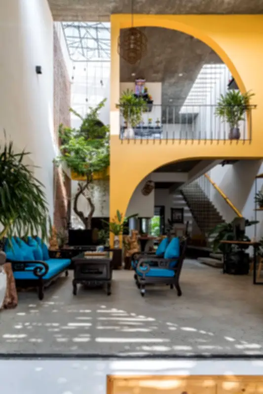 Bước ra sân hiên lát gạch đỏ truyền thống, bạn sẽ được bao quanh bởi những mảng xanh tươi mát từ cây cối được bố trí khéo léo. Không gian này không chỉ mang lại cảm giác bình yên, thư thái mà còn khiến bất kỳ ai bước vào đều như chạm vào một phần ký ức thân thuộc của Hội An. Đây là nơi lý tưởng để thư giãn, tận hưởng những khoảnh khắc yên tĩnh và kết nối với văn hóa địa phương, tạo nên một trải nghiệm sống trọn vẹn và đầy ý nghĩa.