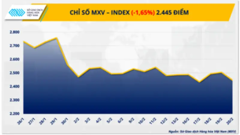 Tuần giao dịch vừa qua, thị trường hàng hóa Việt Nam ghi nhận những biến động mạnh mẽ, với chỉ số MXV-Index đóng cửa ở mức 2.445 điểm, mất hơn 1,6% so với tuần trước đó. Sự sụt giảm này phần lớn đến từ diễn biến phức tạp trong nhóm năng lượng và nguyên liệu công nghiệp, nơi giá dầu tăng vọt do căng thẳng địa chính trị trong khi giá cà-phê lại giảm sâu vì nguồn cung dồi dào.
