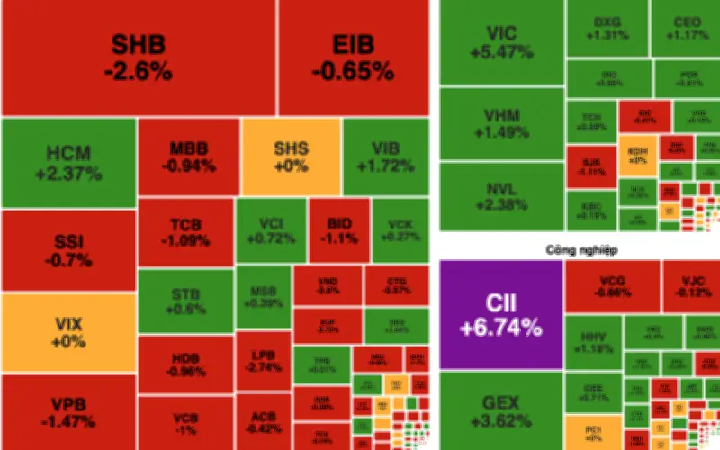 Bên cạnh đó, một số cổ phiếu riêng lẻ như BSR, GEX, VIB, NVL, CII, STB hay HCM cũng góp phần nâng đỡ thị trường. Trong đó, CII gây chú ý khi tăng trần với thanh khoản cao, trong khi nhiều cổ phiếu vốn hóa vừa và nhỏ ghi nhận mức tăng trên 2-3%, cho thấy dòng tiền có xu hướng tìm kiếm cơ hội ở nhóm này.