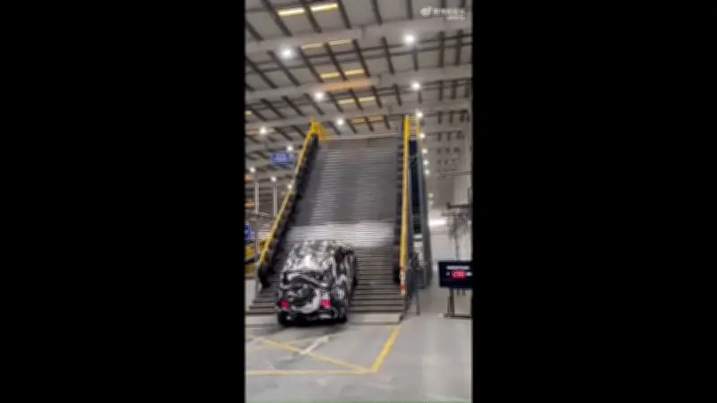 Theo Car News China, nguyên mẫu được ngụy trang kỹ lưỡng đã dễ dàng chinh phục bản sao của Cầu thang Thiên Cấp, với một biển báo "Cầu thang Thiên Cấp - núi Thiên Môn" đặt tại địa điểm. Góc dưới bên phải video hiển thị dòng chữ "Lần thử thứ 1.289", phản ánh quá trình phát triển sâu rộng và kỹ lưỡng. Sina Auto cho biết, mô hình thử nghiệm có chiều dài hành trình hạn chế nhưng mô phỏng chính xác độ dốc cực đại của các bậc thang biểu tượng.