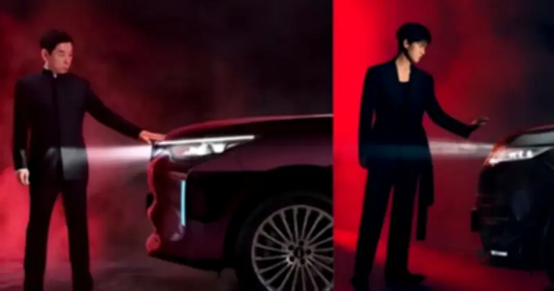 Chiếc xe Land Rover đã được thay thế bằng mẫu Wey V9X, nhưng vẫn được chụp từ góc ngang tương tự. Một người đàn ông châu Á mặc đồ đen cũng đứng cạnh xe và thực hiện động tác đưa tay về phía nắp ca-pô. Phía sau vẫn xuất hiện khói và ánh đèn đỏ, với mức độ tương đồng lớn đến mức đèn pha của chiếc Wey cũng chiếu sáng vào nhân vật theo cách gần như y hệt ảnh gốc. Sự giống nhau này khiến nhiều người cho rằng khó có thể biện minh cho hành động tham khảo ý tưởng thông thường.