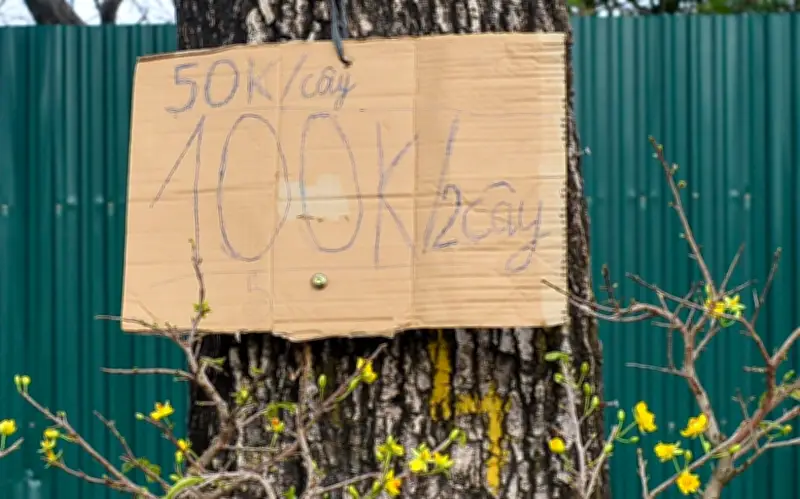 Tại khu vực chợ hoa Tết Mỹ Đình, chị Đỗ Thị Oanh (quê Hưng Yên) không giấu được vẻ buồn bã khi đứng giữa dãy mai vàng vẫn còn tồn đọng. Vụ Tết năm nay, chị Oanh nhập khoảng 2.000 cây mai vàng từ Bến Tre (nay là tỉnh Vĩnh Long) ra Hà Nội để bán, nhưng đến thời điểm này vẫn còn tồn gần 600 cây.