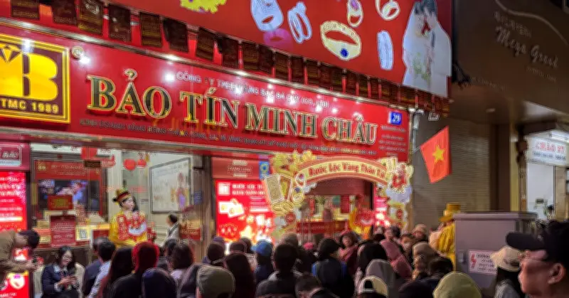 Từ khoảng 3 giờ sáng, khu vực phố Trần Nhân Tông tại Hà Nội, nơi tập trung nhiều cửa hàng kinh doanh vàng bạc lớn, đã rực sáng ánh đèn và đông nghịt người xếp hàng chờ mua vàng dịp vía Thần Tài. Dù trời còn tối và mưa lạnh, dòng người vẫn kiên nhẫn đứng thành hàng dài trên vỉa hè, tạo nên một cảnh tượng nhộn nhịp hiếm thấy.